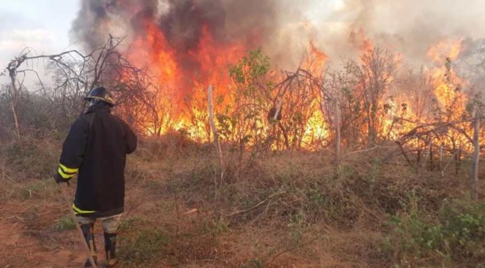 Com as altas temperaturas, focos de incêndios na região do Araripe são registrados no município de Trindade, no Sertão pernambucano, desde o feriado de 15 de novembro. No combate ao fogo de grandes proporções no bairro São Geraldo 05, está sendo necessário o trabalho do Corpo de Bombeiros para conter as chamas que já tomavam conta de uma área de caatinga próximo ao perímetro urbano, a fumaça era vista a distancia. Foram quase três horas de trabalho para conter o fogo, com o apoio da Guarda Municipal, bombeiros civis e populares. Outro grande incêndio foi registrado no sábado (16) no sítio Suçuarana na zona rural do mesmo município nas proximidades da PE-630. O fogo já tinha consumido boa parte da caatinga, os próprios moradores da comunidade tentavam apagar as chamas, ninguém soube explicar o que provocou o incêndio. Com informações de Francisco Monteiro/e foto de Leonardo Leite.