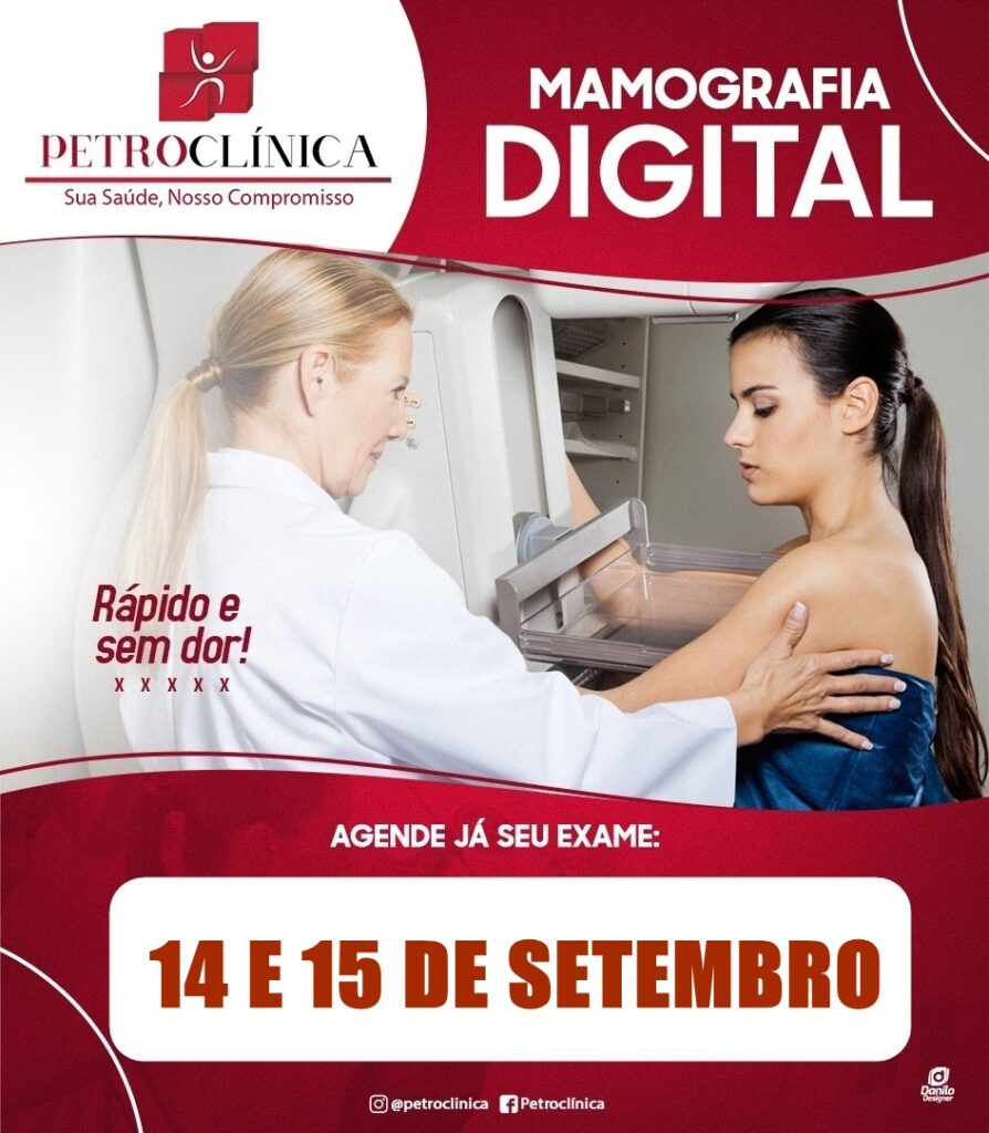 Mamografia Digital nos dias 14 e 15 de Setembro na Petroclínica de Petrolândia; agende a sua!