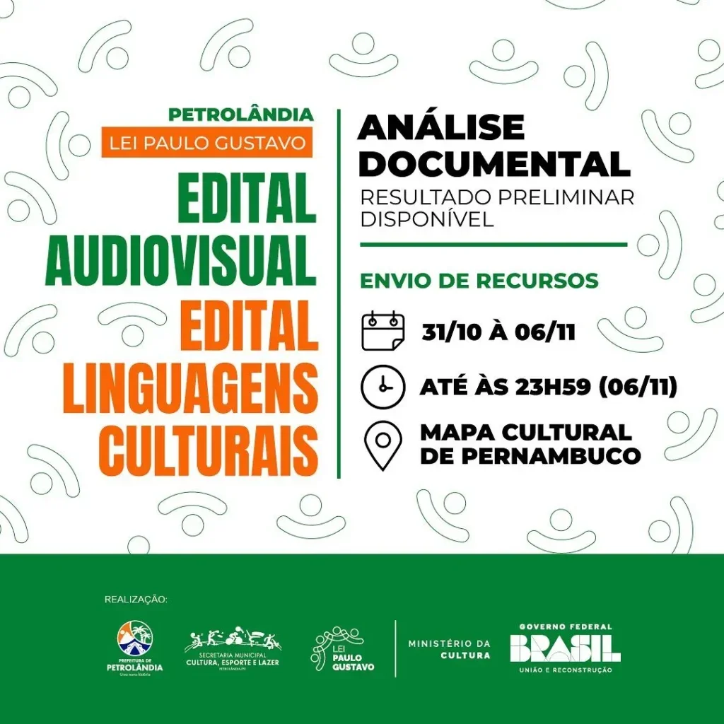 Resultados da análise documental dos Editais da Lei Paulo Gustavo de Petrolândia-PE, já estão disponíveis no Mapa Cultural de Pernambuco