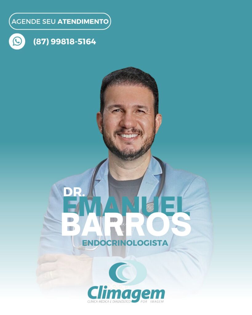 Petrolândia: Endocrinologista Dr. Emanuel Barros atende na CLIMAGEM, no próximo dia (7) quinta-feira’, a partir das 8h; agende já sua consulta!