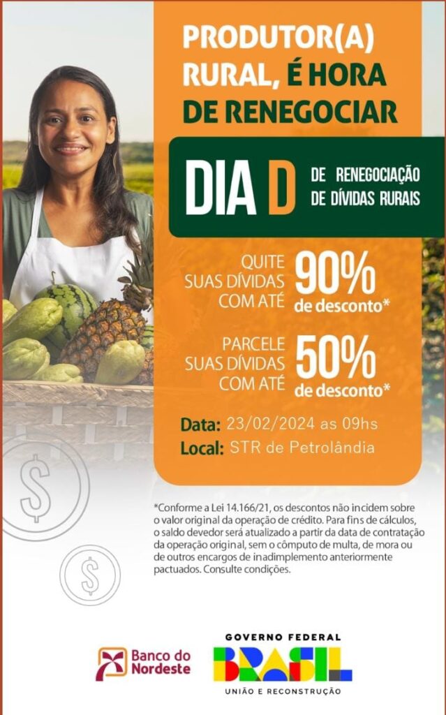 Sindicato dos Trabalhadores Rurais (STR) de Petrolândia convida para Dia “D” de Renegociações do PRONAF com Banco do Nordeste