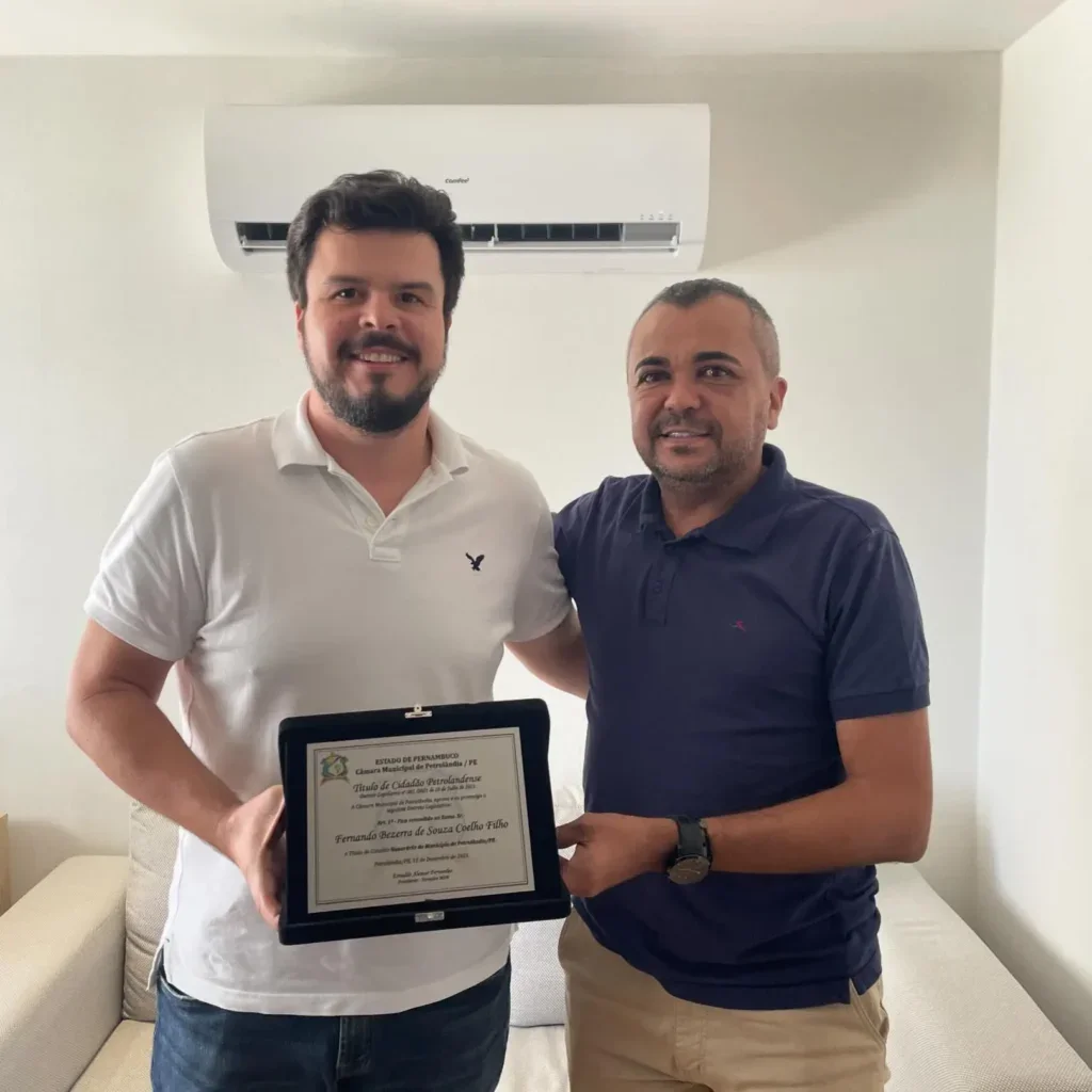 No início deste mês, o Vereador e Presidente da Câmara Municipal de Petrolândia-PE, Erinaldo Alencar, conhecido como Dedé de França, teve a honra de entregar o Título Honorário de Cidadão de Petrolândia ao Deputado Federal Fernando Filho.