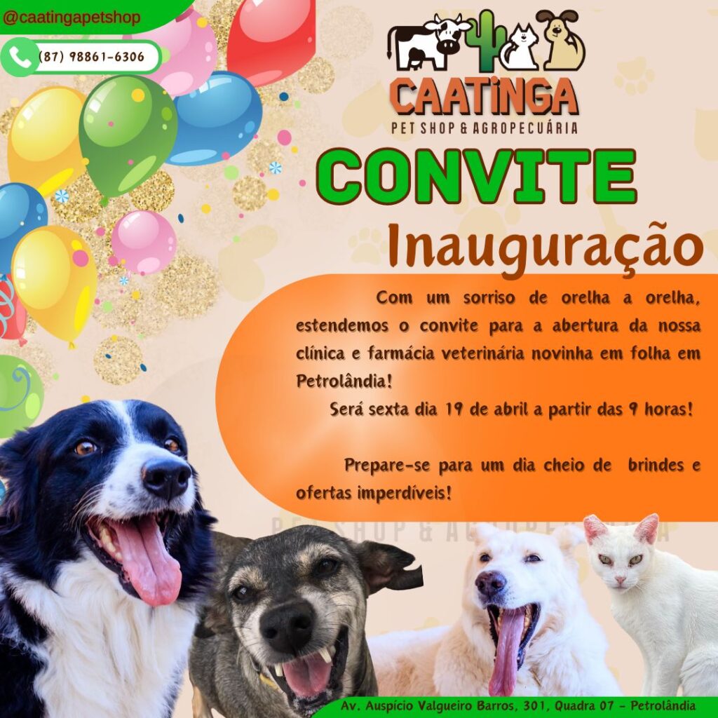 Preparem-se, amantes de animais! Na próxima sexta-feira, dia 19 deste mês de abril, Petrolândia recebe uma grande novidade: a inauguração da Clínica Veterinária da Caatinga Pet Shop e Agropecuária. Aguardem ansiosos, pois em breve estaremos prontos para oferecer os melhores cuidados e serviços para seus pets.