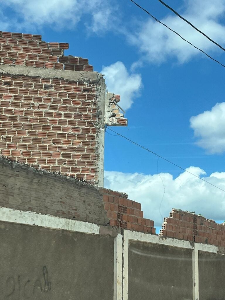 Após uma tempestade recente que atingiu a cidade, um leitor preocupado entrou em contato com nossa redação e enviou fotos alarmantes: uma parte da estrutura do muro do palco do Clube Grêmio Lítero Recreativo de Petrolândia está pendurada próximo a uma calçada frequentada por pedestres.