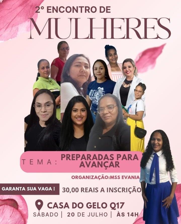 Não perca o 2º Encontro de Mulheres em Petrolândia, com o tema “Preparadas para Avançar”. Este evento, organizado por MSS Evania, promete ser uma tarde inspiradora e de muito aprendizado. Garanta já sua vaga e participe desse momento único de empoderamento e desenvolvimento pessoal.