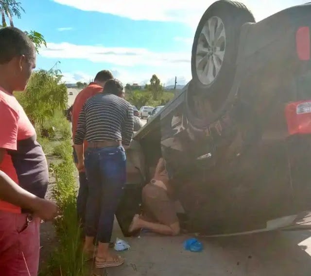 Como é possível ver na imagem em destaque nesta publicação, o carro estava capotado e algumas pessoas que trafegavam pela rodovia pararam para ajudar os ocupantes do veículo.