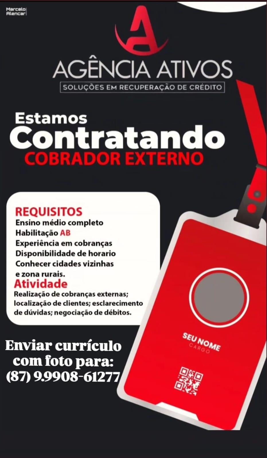 A Agência Ativos, especializada em soluções de recuperação de crédito em Petrolândia-PE, está contratando cobrador externo para integrar sua equipe. A oportunidade exige candidatos com experiência em cobranças externas e com boa disposição para atuar em diversas localidades.