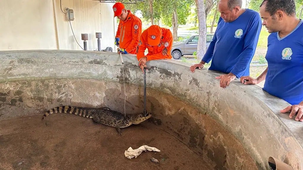 Na manhã desta quinta-feira (04) uma guarnição do 15° GBM, de Paulo Afonso, um jacaré de aproximadamente 1,50m de comprimento. O animal estava dentro de um tanque vazio, na Avenida Maranhão, 24, antigo acampamento da Chesf, quando foi percebido por um trabalhador que acionou o resgate.