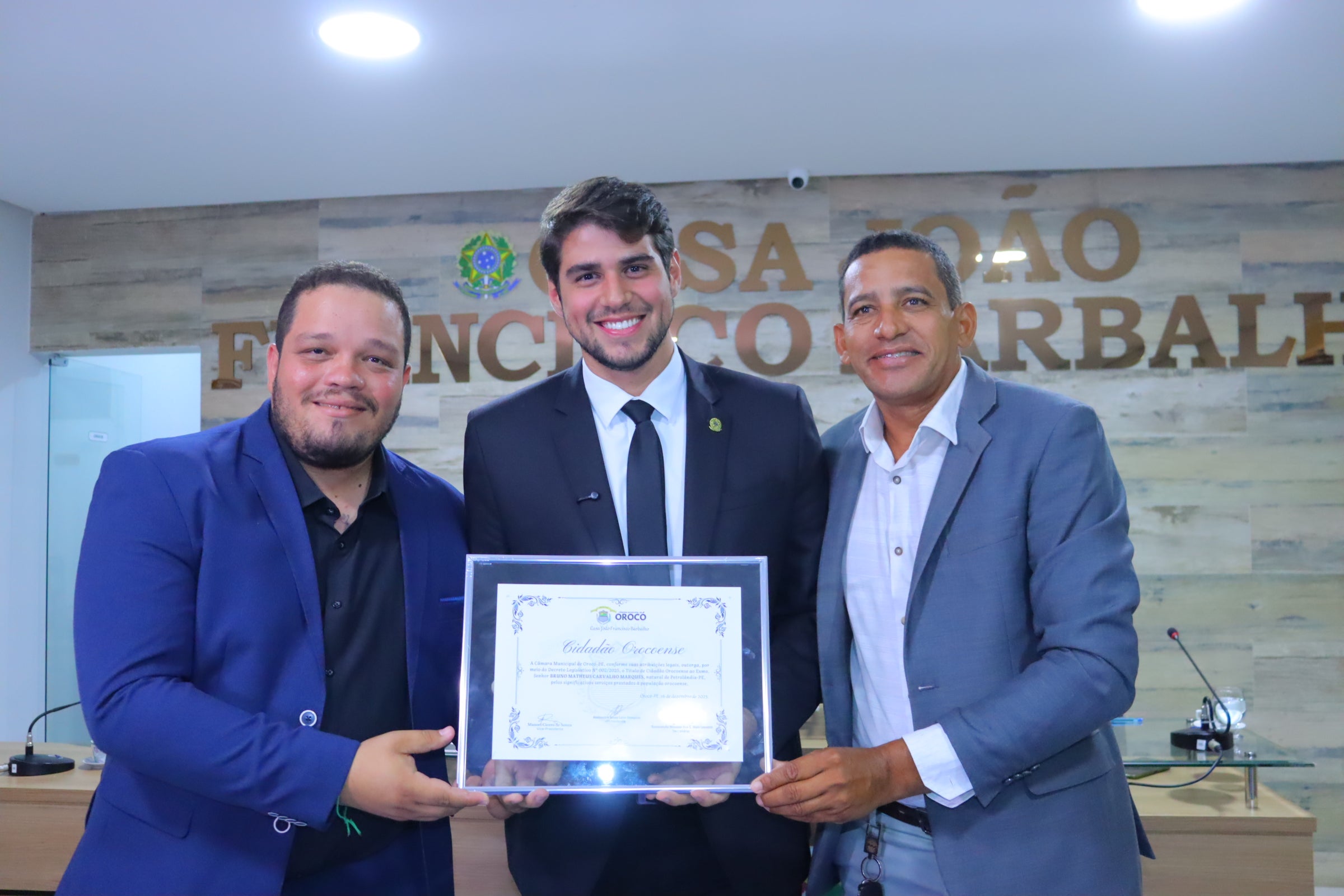 Durante seu discurso, Bruno Marques destacou o vínculo com o município e ressaltou a hospitalidade do povo orocoense. “Receber o Título de Cidadão Orocóense é uma honra imensa. Aqui sempre somos bem recebidos. É uma terra de gente trabalhadora, simples e acolhedora, que enfrenta os desafios diários sem perder a esperança por dias melhores”, afirmou.