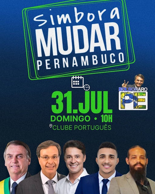 Campanha de Bolsonaro divulga convite do lançamento da Convenção ‘Simbora Mudar Pernambuco’ neste domingo (31), a partir das 10h no Recife