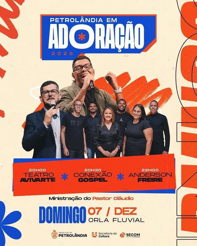 Neste domingo (07/12), Petrolândia viverá uma noite especial na Orla Fluvial com a realização do Petrolândia em Adoração 2025, reunindo fé, música e momentos de grande emoção.