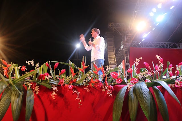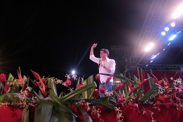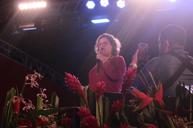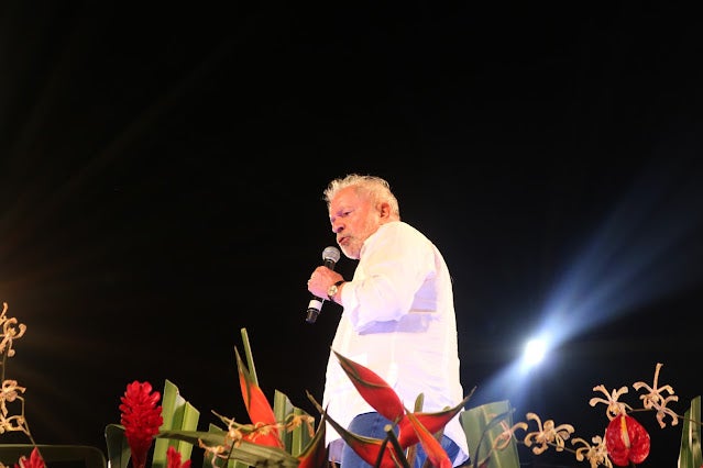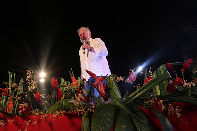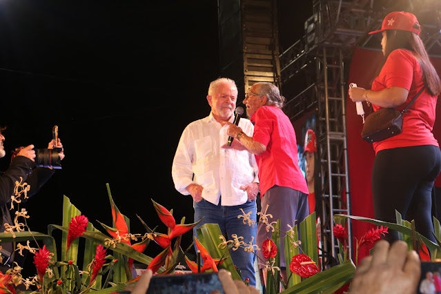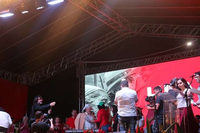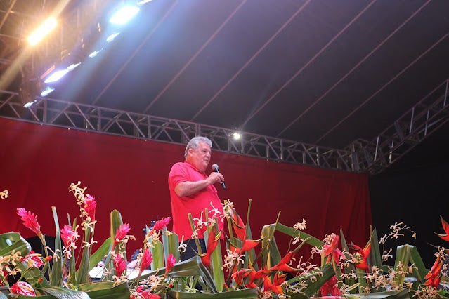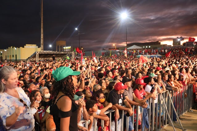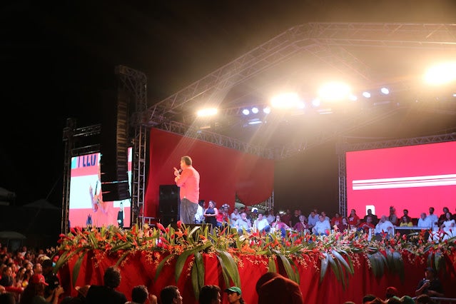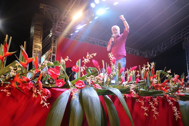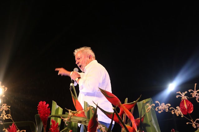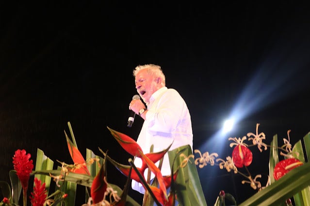 Previsto para começar às 16h, Lula subiu ao palco às 18h14, acompanhado do seu pré-candidato a vice, o ex-governador Geraldo Alckmin (PSB), e da sua esposa, a socióloga Janja, mas foi o último a discursar. Durante sua fala, o líder petista pediu desculpas pelo atraso e disse que foi em Serra Talhada que ele teve mais de 90% dos votos, em sua última eleição.