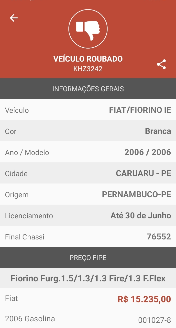 O carro, que tem a cor branca (placas KHZ-3242), foi consultado por nossa reportagem através do aplicativo Master Placa, sendo apontado como roubado. Chamamos aqui a atenção da Polícia Militar para fazer a recuperação do veículo.
