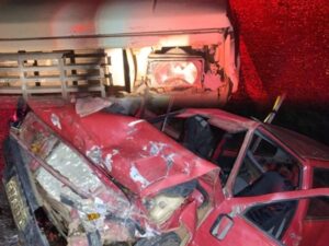 Na noite desta terça-feira (22), dois acidentes de trânsito envolvendo cinco veículos geraram apreensão em Petrolândia-PE. Os acidentes ocorreram em pontos próximos, com o primeiro registrado nas imediações da ponte da BR-316. O primeiro acidente foi uma colisão frontal entre uma caminhonete D20 e um Fiat Uno Mile. A gravidade da batida resultou em uma vítima presa nas ferragens, o condutor do Uno Mile, identificado como Dionízio J. dos S., de 70 anos. Ele sofreu escoriações na face e sangramento nasal, necessitando de um resgate complexo por parte do Corpo de Bombeiros. Após ser retirado das ferragens, Dionízio foi encaminhado ao hospital municipal, onde seu estado de saúde ainda não foi divulgado. O condutor da D20, identificado como Helder G. de S., saiu ileso do acidente. O segundo acidente, que ocorreu logo após o primeiro, envolveu três veículos – uma pick-up Saveiro, uma caminhonete S10 e um Renault Captur. A batida traseira foi causada pela freada brusca de um dos veículos em razão do primeiro acidente. Felizmente, não houve relatos de feridos graves neste segundo sinistro. De acordo com o Corpo de Bombeiros, após o atendimento no local, a equipe da Auto Resgate, junto com o SAMU, que foi chefiado pelo Dr. Rodrigo Carvalho Souza (CRM/PE: 32518), atuou rapidamente para estabilizar e socorrer as vítimas. O Fiat Uno, conduzido por Dionízio, estava severamente danificado, com deformações na lateral, teto e parte frontal. Já a caminhonete D20, conduzida por Helder, apresentou danos frontais, mas sem ferimentos ao motorista. Fotos Corpo de Bombeiros: Fotos Extras: REPORTAGEM RELACIONADA: https://petrolandianoticias.com.br/dois-acidentes-de-transito-envolvendo-quatro-veiculos-e-registrado-em-petrolandia-pe-confira-fotos-e-video/ Por Redação | Informações e fotos: Corpo de Bombeiros (4ª Seção/Petrolândia)