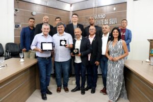 Na manhã desta sexta-feira (14), a Câmara Municipal de Petrolândia-PE realizou uma Sessão Solene de Entrega de Títulos de Honra ao Mérito na Casa de Aurelino de Menezes, Plenário Vereador Pedro Cavalcante da Silva. A sessão, presidida pelo Vereador Presidente Erinaldo Alencar Fernandes, reconheceu as contribuições de três destacados cidadãos para o desenvolvimento e bem-estar da população local. Homenageados da Sessão Solene Fabiano Marques – Prefeito de Petrolândia-PEO Prefeito Fabiano Marques foi agraciado com o Título de Honra ao Mérito, concedido pelo Presidente da Câmara, Vereador Erinaldo Alencar Fernandes, conhecido como Dedé de França. A honraria reconhece o compromisso e a dedicação do prefeito na gestão municipal, promovendo melhorias significativas em diversas áreas da administração pública. Rogério Novaes – Vice-Prefeito de Petrolândia-PEO Vice-Prefeito Rogério Novaes também recebeu o Título de Honra ao Mérito, igualmente concedido pelo Presidente da Câmara, Dedé de França. A homenagem destaca o papel fundamental de Rogério no apoio às políticas públicas e no desenvolvimento de projetos que beneficiam a população petrolandense. Armando Rodrigues – EmpresárioO empresário Armando Rodrigues foi homenageado com o Título de Honra ao Mérito, concedido pela Vereadora Adelina Martins. Rodrigues foi reconhecido por sua contribuição ao crescimento econômico e social do município através de suas iniciativas empresariais, que geram emprego e renda para a comunidade. As honrarias entregues na Sessão Solene refletem o reconhecimento da Câmara Municipal de Petrolândia aos cidadãos que, com seu trabalho e dedicação, promovem o desenvolvimento e o bem-estar da população. A cerimônia destacou a importância do engajamento comunitário e do esforço coletivo para a construção de um município próspero e sustentável. Significado das Homenagens A sessão contou com a presença de diversas autoridades locais, incluindo ex-vereadores, secretários municipais, familiares dos homenageados e membros da cidade, que aplaudiram os reconhecimentos e celebraram as conquistas dos agraciados. Com essas homenagens, a Câmara Municipal reafirma seu compromisso em valorizar e reconhecer os esforços daqueles que contribuem para o progresso de Petrolândia, fortalecendo o espírito de cooperação e responsabilidade social no município. VEJA MAIS FOTOS ATRAVÉS DO LINK: https://drive.google.com/drive/folders/1QWXPrgRlENUu7sK68-MKpGHY9sx-6AKa?usp=sharing VEJA VÍDEO: Por Assessoria da Câmara Municipal de Petrolândia | Fotos e Vídeo: Alex Santos