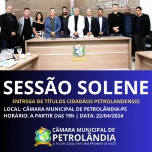 Na noite desta segunda-feira (22), a partir das 19h, a Câmara Municipal de Petrolândia-PE foi o palco de uma celebração única: a tão aguardada Sessão Solene de Entrega de Títulos Cidadãos. O evento, marcado por sua solenidade e importância cívica, reconheceu o comprometimento e as significativas realizações de indivíduos notáveis que se destacaram na promoção do desenvolvimento, bem-estar e progresso da população petrolandense.