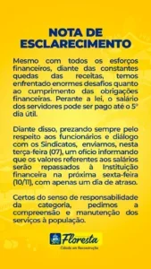 O Sindicato dos Servidores Públicos Municipais (SINDISMUF) e o Sindicato Único dos Profissionais do Magistério Público das Redes Municipais de Ensino (SINDUPROM) em Floresta, no Sertão de Pernambuco, promoveram na manhã desta quinta-feira (9) um manifesto contra o atraso de pagamento por parte da Prefeitura Municipal.