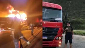 Na noite de sábado (09/12), um grave acidente foi registrado na BR-110, próximo ao povoado Riacho, em Paulo Afonso, Bahia. Segundo informações de testemunhas, a colisão envolveu duas carretas – uma carregada com batatas e outra com perfumes. O caso ocorreu quando um dos motoristas tentou desviar de uma vaca na pista, resultando em uma colisão seguida de incêndio.