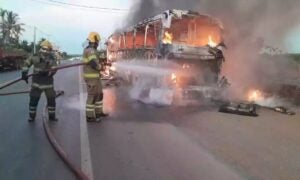 Um ônibus de passageiros pegou fogo na manhã desta quarta-feira (22/3), em Montes Claros, no Norte de Minas. O Corpo de Bombeiros foi acionado por volta das 5h30 para controlar as chamas.