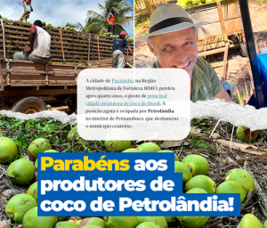 O vice-prefeito de Petrolândia, Rogério Novaes, comemorou a conquista histórica do município, que agora ocupa o posto de maior produtor de coco do Brasil. O feito foi confirmado nesta quinta-feira (11) pelos dados da Produção Agrícola Municipal de 2024 (PAM), pesquisa realizada pelo Instituto Brasileiro de Geografia e Estatística (IBGE).