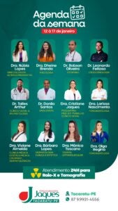 Clínica Jaques divulga Agenda da Semana com atendimentos multiprofissionais em Tacaratu