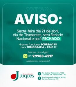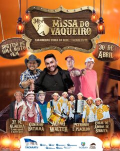 A Prefeitura de Tacaratu divulgou nesta semana a programação completa da Festa Santa Cruz em Caraibeiras 2023. O evento, que é um dos mais aguardados da região, acontece entre os dias 23 de abril e 02 de maio e promete muita diversão para todos os públicos. Com um mix de artistas locais, regionais e nacionais, a festa contará com a presença de grandes nomes da música como Mano Walter, Jonas Esticado, Zé Vaqueiro e Chicabana. Além disso, os artistas regionais terão espaço garantido para mostrar seu talento. Confira a programação completa: Dia 23/04: Jakeline MaryDia 24/04: Jeyninho Souza/Eron e Banda AvohaiDia 25/04: Danilo Gomess/Edygar ShowDia 26/04: Heraldo Jr. e Emanuel/Emerson e GledsonDia 27/04: Paulinho e Nininho/Aninha AraújoDia 28/04: Chico Bala/LilaDia 29/04: Banda Karisma/ChicabanaDia 30/04: Mano Walter, Geninho Batalha e Petronio e PlacildoDia 1°/05: Ranieri Vaqueiro/Jonas EsticadoDia 02/05: Fabinho Testado e Zé Vaqueiro A festa acontecerá em Caraibeiras, e contará com toda a infraestrutura necessária para garantir a segurança e conforto dos participantes. Não fique de fora dessa grande celebração! Por Redação | Informações: Assessoria da Prefeitura de Tacaratu