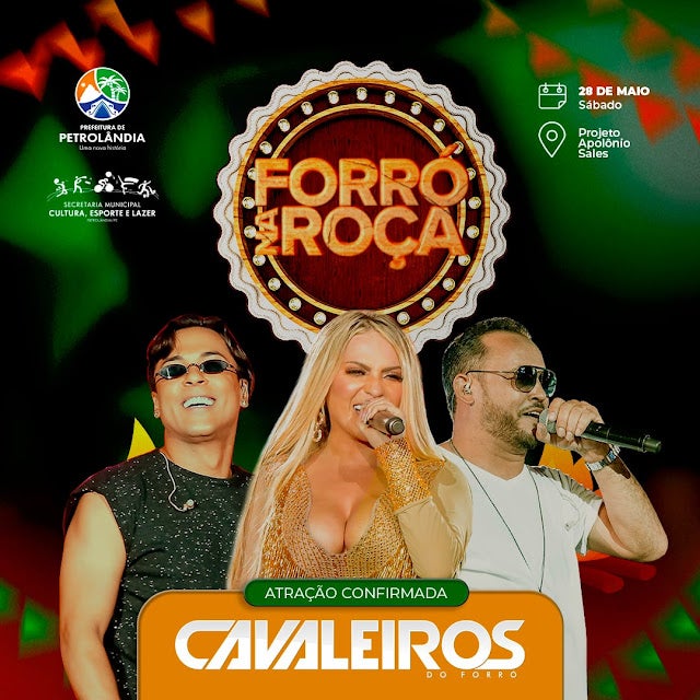 A Banda Cavaleiros do Forró é a primeira atração confirmada para o ‘Forró na Roça’ que será realizado no dia 28 de maio no Projeto Apolônio Sales na zona rural de Petrolândia-PE.