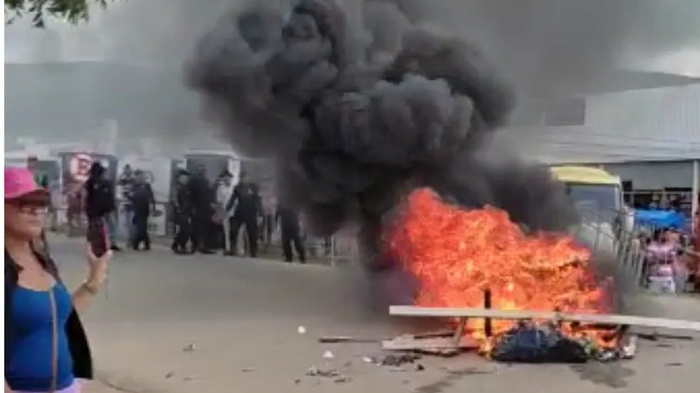 “Alguns ambulantes insistem em descumprir o horário e tentam iniciar a comercialização antes do horário autorizado, o que não é permitido. Na manhã desta quinta-feira (23), um número reduzido de pessoas iniciaram uma queima de pneus tentando fechar a BR -104, prejudicando não apenas a todos que se encontram no entorno do Parque das Feiras como também a todos os veículos que fazem a travessia de nossa cidade”, disse a prefeitura em nota.