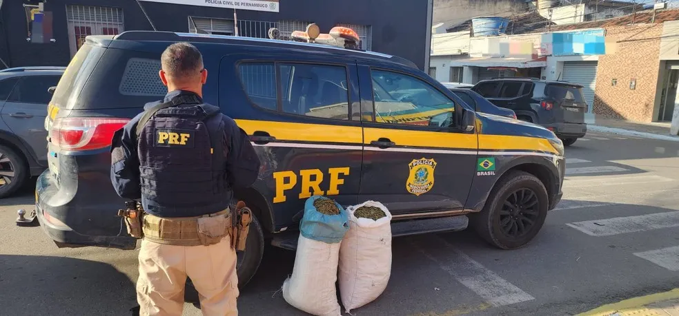 Um homem e uma mulher, que não tiveram os nomes divulgados, foram detidos pela Polícia Rodoviária Federal com 26 quilos de maconha na BR 423, em São Caetano, no Agreste de Pernambuco. O caso aconteceu na tarde da quinta-feira (5).