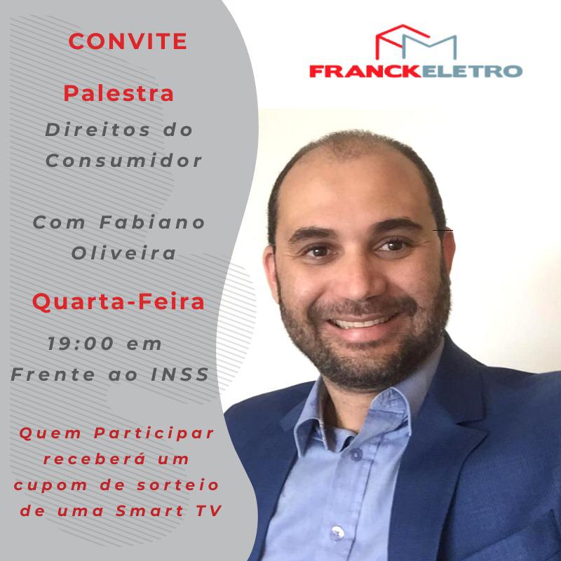 De 15 a 20 de março com ofertas sensacionais. Produtos com preço de internet e entrega imediata. E para celebrar ainda mais, na quarta-feira, dia 18, às sete horas da noite, haverá uma palestra sobre os direitos do consumidor, com o advogado Dr. Fabiano Oliveira, em frente ao INSS (Avenida Auspício Valgueiro Barros), no Centro de Petrolândia. E na sexta-feira, dia 20, às quatro horas da tarde, os clientes da Franck Eletro e os participantes da palestra vão concorrer ao sorteio de uma Smart TV de 32 polegadas.