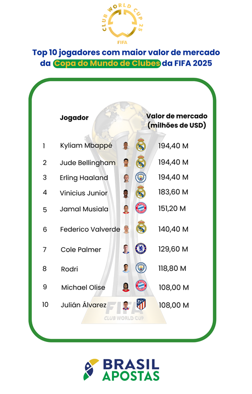 Em Brasil Apostas, analisamos os valores de mercado dos clubes e jogadores mais valiosos do mundo, com foco especial nos representantes brasileiros. Também exploramos o contexto histórico, as projeções para o torneio e o impacto que o desempenho no Mundial pode ter na valorização dos atletas e das instituições esportivas.