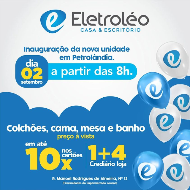Você é nosso convidado especial para inauguração da nova loja do grupo Eletroléo. Será um prazer recebê-lo, contamos com a sua presença!