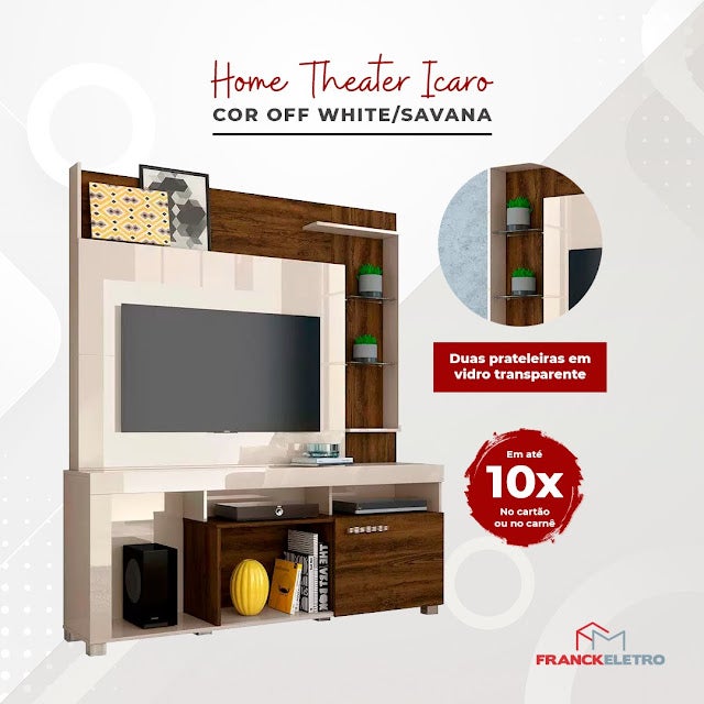 Na cor off white/savana, esse ‘Home Theater Icaro’ promete trazer leveza e modernidade para o ambiente.