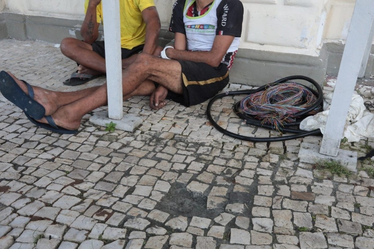 Dois homens foram presos após o furto de fios elétricos ligados à chefia da Polícia Civil de Pernambuco, na Rua da Aurora, no bairro da Boa Vista, área central do Recife. O flagrante foi feito nesta sexta-feira (18).