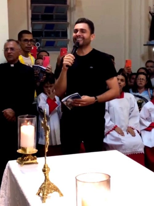 Além do espetáculo, Mano Walter participou do novenário de Nossa Senhora da Saúde, evidenciando sua fé e devoção em um dos momentos mais especiais da celebração religiosa local.