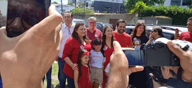Acompanhada do marido, das filhas, de seu candidato a vice Sebastião Oliveira e do candidato ao Senado André de Paula, Marília Arraes votou na manhã de hoje (2), por volta das 9h30, no colégio GGE do Parnamirim. No local, recebeu apoio da militância.
