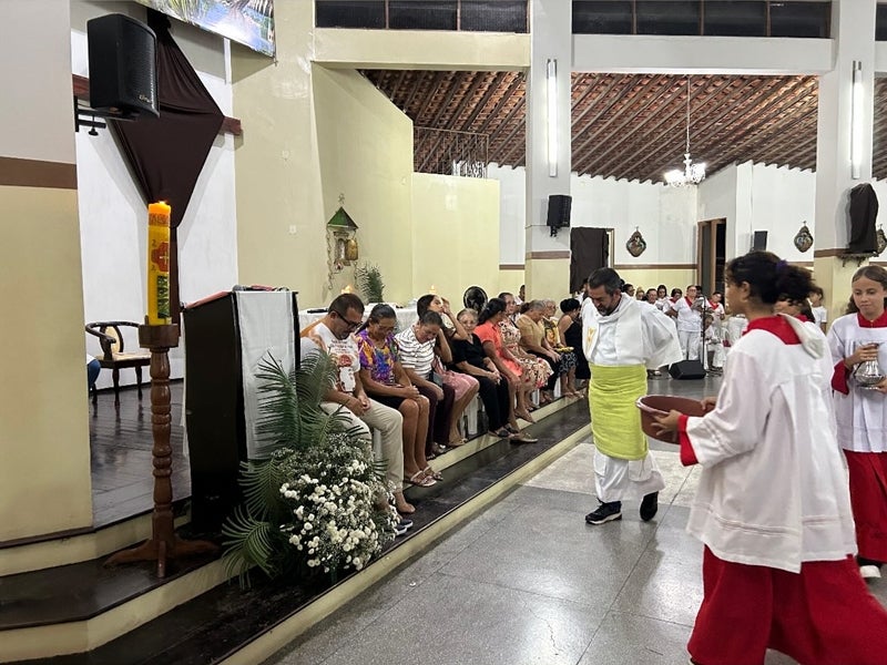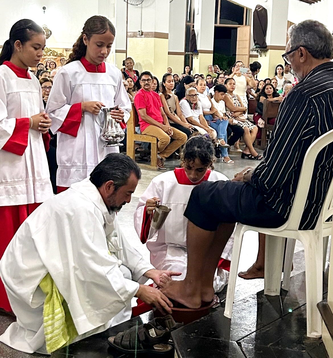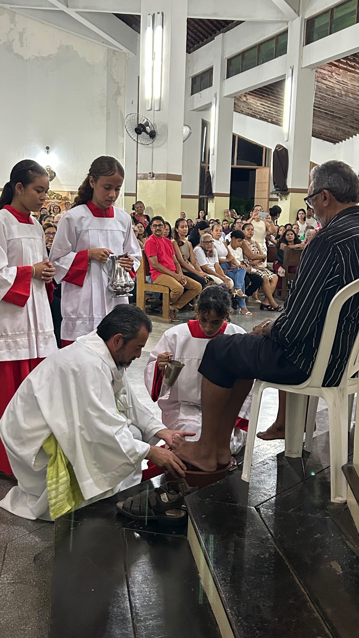 Outro ponto central da celebração é o gesto do lava-pés, que revela o coração do Evangelho: o amor que se faz serviço.