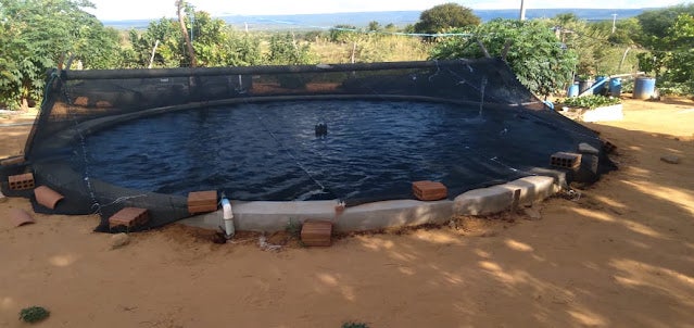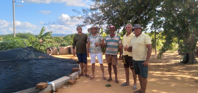 O técnico da Secretaria de Agricultura de Tacaratu-PE, Márcio Gomes no Assentamento Antônio Conselheiro II, onde na oportunidade mostrou um projeto de criação de tilápia no quintal da casa.