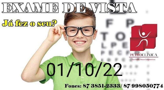 Neste próximo sábado (1° de outubro) realização exame de vista é na Petroclínica de Petrolândia; agende já o seu!