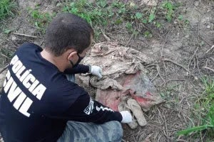 “Foi encontrada uma ossada e aí a gente encaminhou os restos mortais para fazer perícia, por enquanto a gente não tem conclusão para a afirmar se é de um indivíduo do sexo masculino ou feminino”, disse Barros. Pelo avançado estado de putrefação, o inquérito que será aberto na delegacia local constará como morte a esclarecer.