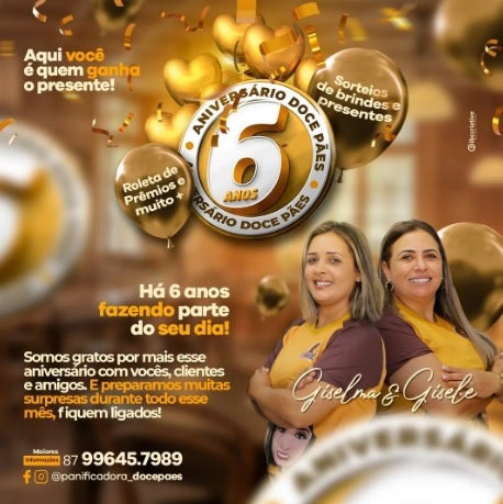 A Panificadora Doce Pães de Petrolândia, comemorou no dia 1° de agosto, seu aniversário de 6 anos. E neste mês de comemoração tem muitas surpresas e sorteios para seus clientes.