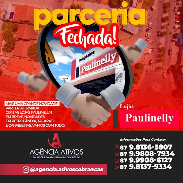Parceria fechada entre Agência Ativos & Lojas Paulinelly. Vem ai muitas novidades nas cidades de: Petrolândia, Tacaratu e Caraibeiras.