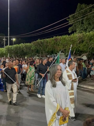 A programação teve início com a concentração dos fiéis em frente ao Terminal Rodoviário. Por volta das 19h, a tradicional procissão percorreu as ruas da cidade até a Igreja Matriz, sendo acompanhada por um expressivo número de devotos. O trajeto foi marcado por cânticos entoados pelo Coral Vozes de São Francisco, que conduziu o momento de fé e devoção celebrado pelo padre Geraldino Rodrigues.