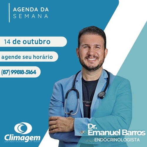 Petrolândia: Endocrinologista Dr. Emanuel Barros atende na CLIMAGEM, no dia 14 de outubro, agende seu horário!