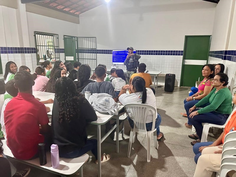 A palestra foi direcionada aos estudantes do 8º e 9º ano e conduzida pelo Cabo Lucas, representante da 4ª CIPM. A atividade também contou com a participação do corpo docente da unidade e incluiu uma roda de conversa com os alunos.