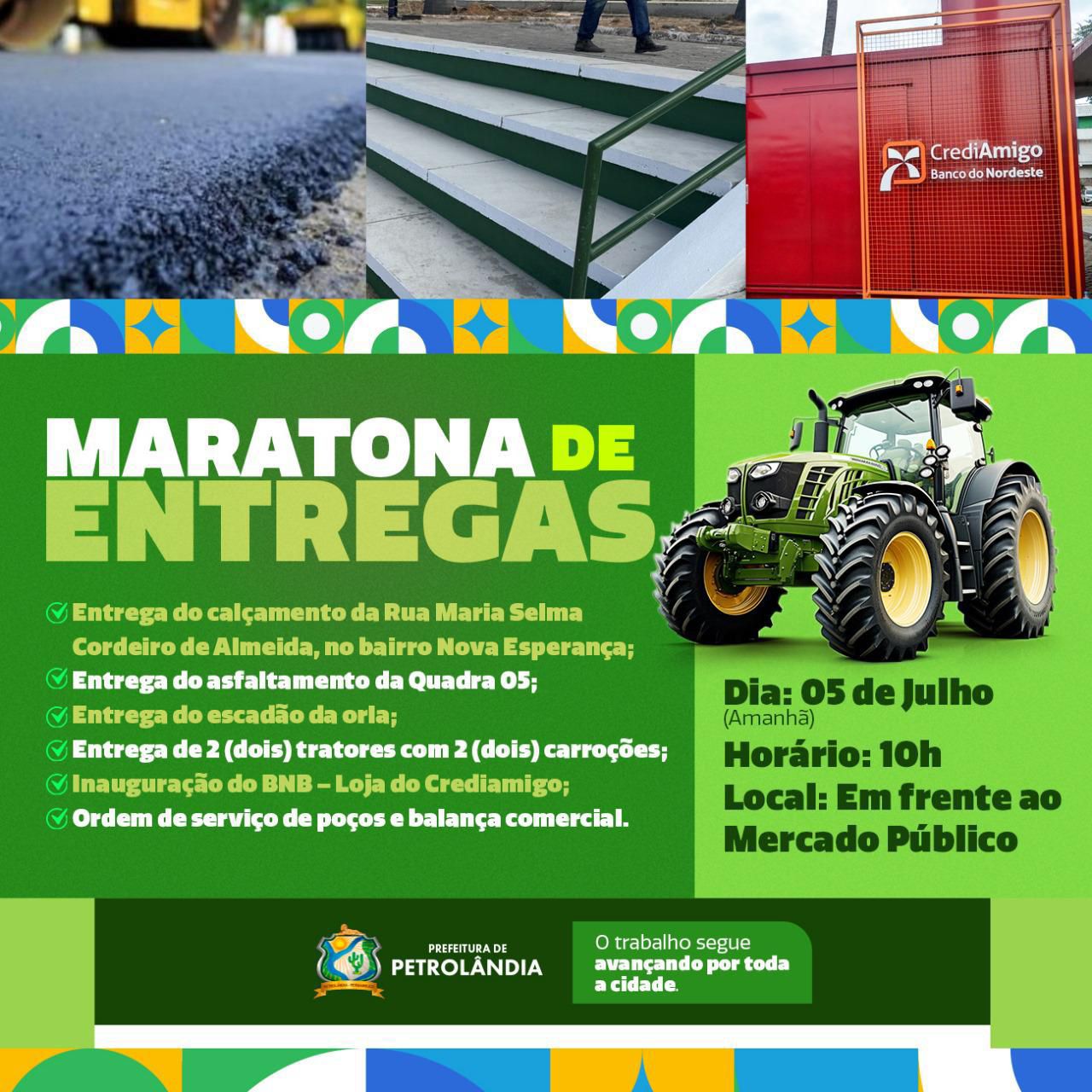 Nesta sexta-feira (5), o Prefeito de Petrolândia, Fabiano Marques, promoverá uma maratona de entregas por meio da Prefeitura, com o objetivo de transformar a cidade e beneficiar a população local. O evento, intitulado “Maratona de Entregas”, contará com várias inaugurações e entregas importantes: