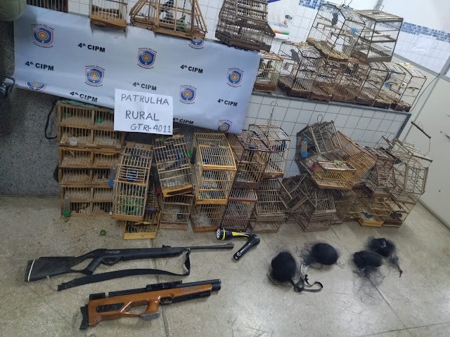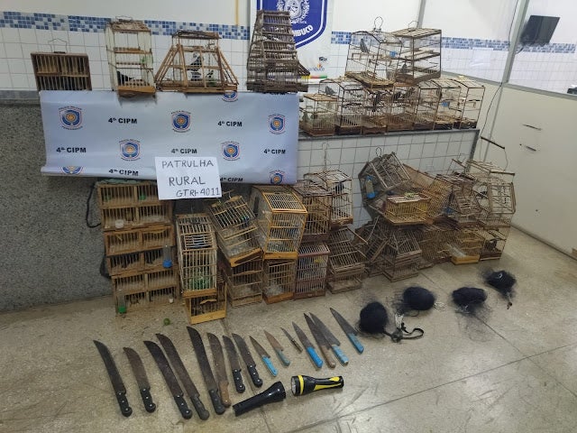 10 pessoas foram presas após serem encontradas em um acampamento na caatinga, na zona rural de Petrolândia (PE) no último sábado (19). Segundo a Polícia Militar de Pernambuco, o grupo estava com 45 aves silvestres do tipo azulão.