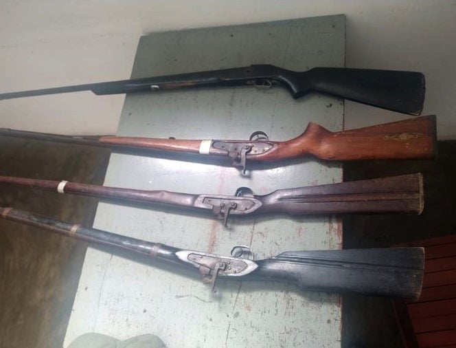 Na tarde desta quinta-feira (10), por volta das 13h, policiais militares da 4ª CIPM, lotados na GTRI 4011, realizaram a apreensão de quatro espingardas de fabricação artesanal nas proximidades do Rio Moxotó, na zona rural do distrito de Caraibeiras, município de Tacaratu, no Sertão de Pernambuco.