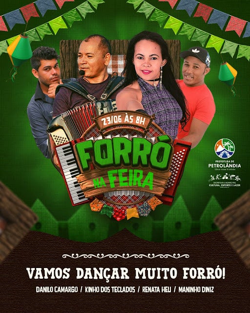 Nesta quinta-feira (23/06), a prefeitura de Petrolândia estará promovendo o Forró na Feira, a partir das 8h da manhã no mercado público.