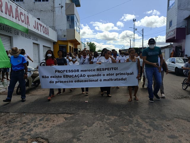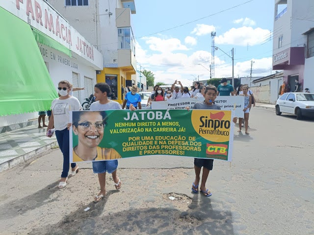 Na manhã desta quinta-feira, 12 de maio, um grande grupo de professores da rede municipal de Educação, saíram as rua, onde em seguida se reuniram em frente à sede da Prefeitura de Jatobá (PE) contra o Projeto de Lei 017/22, de autoria do Poder Executivo que tem por finalidade fazer alterações no PCC – Plano de Cargos e Carreiras dos profissionais da educação.